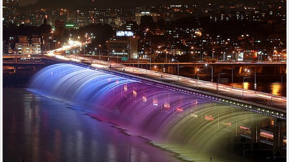 World's longest bridge fountain in Seoul - Banpo Moonlight Rainbow Fountain