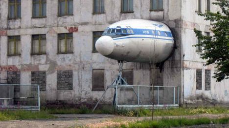 Rosja to nie kraj, to stan umysłu – twierdzą niektórzy i chyba coś w tym jest. Co kierowało twórcą tej niezwykłej kompozycji? Budynek na zdjęciu jest od dawna opuszczony, jednak intrygująca instalacja z użyciem fragmentu kadłuba samolotu – dziobu Iła 18 wciąż zastanawia. Czyżby miała to być tylko gra o dodatkową powierzchnię? Nie wiadomo, prezentuje się jednak... – hm... – oryginalnie.