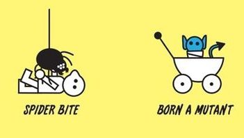 Cała grafika przedstawia 12 komiksowych sposobów na zdobycie supermocy. Potraficie rozpoznać pochodzenie wszystkich ilustracji?