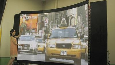 Ekran ma dwa metry wysokości i trzy szerokości. Tworzy go sześć części składowych wykonanych w technologii Plasma Tube Array. Poszczególne panele mają tylko 1 milimetr grubości. Niestety inne właściwości wyświetlacza nie są już tak powalająca. Przede wszystkim 145-calowe monstrum ma rozdzielczość zaledwie 960 x 720 pikseli. Trochę mało.