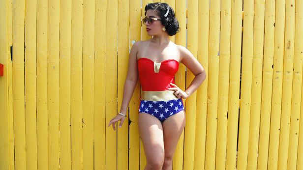 W sklepach internetowych można znaleźć mnóstwo geekowskich ciuchów dla kobiet w stylu superbohaterów. W przypadku kostiumów kąpielowych bardzo popularnym motywem jest Wonder Woman. W Etsy, niestety za dość wysoką cenę (ponad 300 zł), można nabyć takie oto jednoczęściowe cudeńko.
