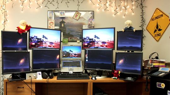 W pokoju tego fana Star Treka poza 9 monitorami znajdują się: klawiatura Das Keyboard v 1, iPody (one są wszędzie!), słuchawki Sennheiser HD650, laptop działający pod Windowsem i komputer stacjonarny z Linuxem na pokładzie.