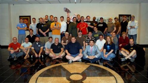 Od lewej do prawej osoby siedzące i klęczące: Chris Cummings, Randy Forsyth, David Riegel, Pat Jones, Pete Knepley, Jay Brushwood, Dave Ratti, George Broussard, Allen Blum, Chris DeSimone, Brian Hook (pink tie), Quinn Del Hoyo (GDC shirt), Scott MacLean, Rob "MacGuvyer" Faison, Andrew "Sonic" Kerschner, Bryan Turner, Steve Blackburn, Kaiser the dog.