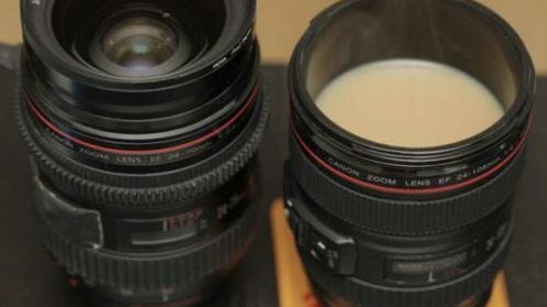 Znakiem rozpoznawczym fotoreportera prasowego jest uniwersalny zoom lub/i długi obiektyw oraz kawa pomagająca się obudzić z rana. Oto idealne połączenie tych dwóch rzeczy – termos lub kubek wyglądający, jak obiektywy Canona z serii "L". Ciekawe, czy ma stabilizacje, aby kawa się nie wylewała.