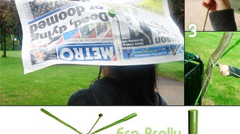 Ekologia stała się modna z mniej lub bardziej sensownych powodów. Ta mniej sensowna część dopadła także parasolki, ale sam efekt jest zdecydowanie godny pokazania. Eco Brolly to malutki, składany szkielet normalnej parasolki, na którą możemy nałożyć gazetę i… już mamy parasolkę!