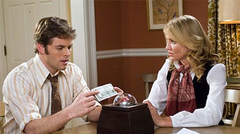 W The box zobaczymy Cameron Diaz, Jamesa Mersdena i Franka Langellę. Tego ostatniego oczywiście w roli dość demonicznej postaci. To właśnie on pojawia się znienacka w życiu małżeństwa granego przez Diaz i Mardsena.
