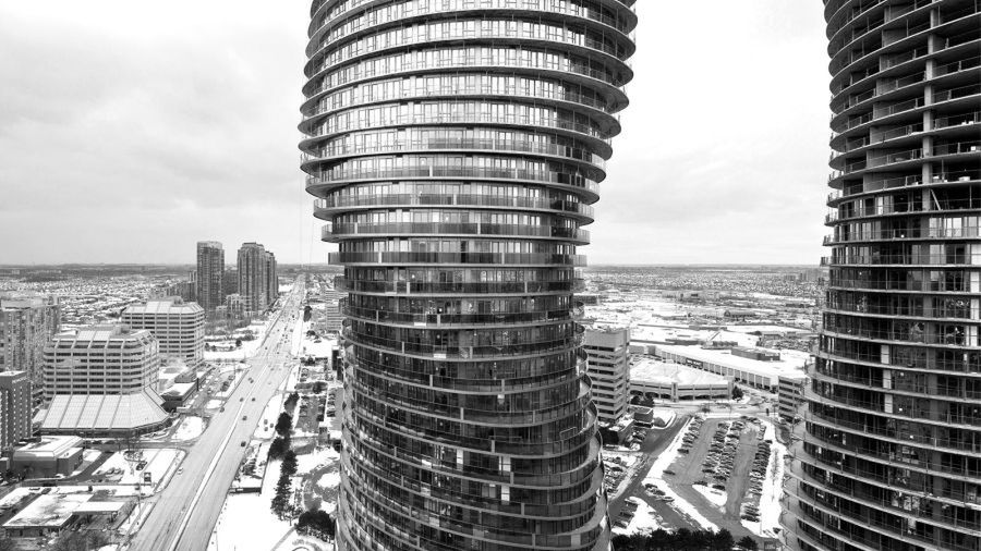 Mississauga to przede wszystkim dzielnice niskich, wolno stojących domków. Jedynie centrum miasta zabudowane jest wysokościowcami. Wśród kilkunastu drapaczy chmur od razu rzucają się w oczy miękkie, wyoblone linie Absolute Towers.