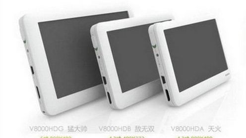 Modele zostały kolejno oznaczone symbolami V8000HDG (Jetfire), V8000HDB (Defcon) oraz V8000HDA (Metorplex). Pierwszy z nich jest wyposażony w 5-calowy ekran o rozdzielczości 800 x 480, a dwa kolejne w matryce o przekątnej 4.3-cala o rozdzielczości 480 x 272 (HDB) i 800 x 480 (HDA). Dziwi mnie jednak to, że środkowy model nie ma dotykowego ekranu.