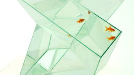 Projekt tego cokolwiek dziwnego akwarium sprawia pewne trudności już przy samym jego oglądaniu. Ciężko jednoznacznie stwierdzić jaki ma kształt, nieprawdaż? Natomiast dla zamkniętych w nim złotych rybek ma sprawiać wrażenie nieskończoności, tzn. możliwości ciągłego pływania w kółko. Specjalnie ukształtowane powierzchnie sprawiają, że akwarium nie ma końca ani początku.