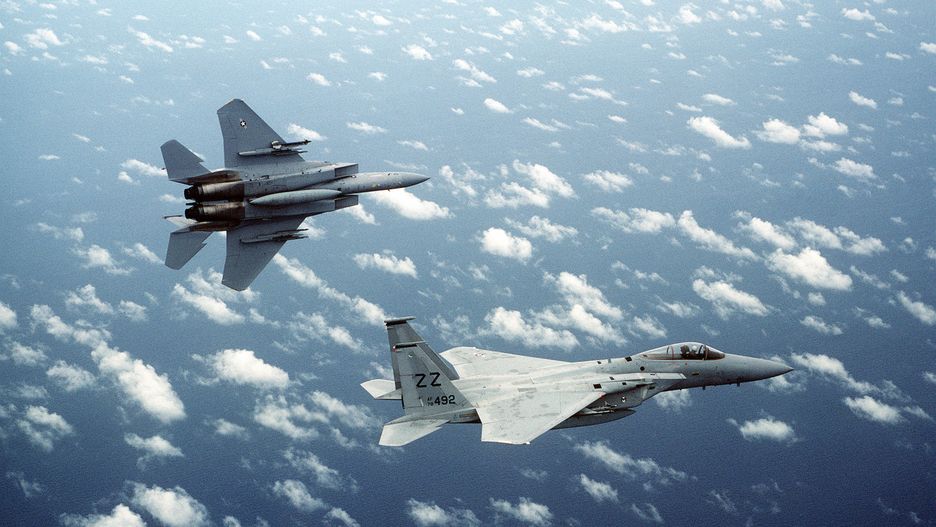 F-15 Eagle to ciężkie myśliwce przewagi powietrznej, które powstały z myślą o działaniach w każdych warunkach atmosferycznych. Samoloty są wyposażone w szereg technologii, dzięki którym mogą realizować misje precyzyjnego namierzania i wywiadu. Myśliwiec jest uzbrojony w pociski krótkiego zasięgu klasy powietrze-powietrze AIM-9X Sidewinder oraz w szybkostrzelne wielolufowe działko M61A1/A2 Vulcan 20 mm.