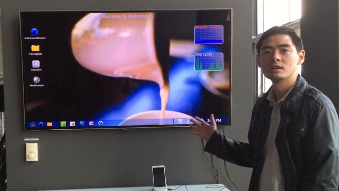 Andromium to coś w rodzaju stacji dokującej, która pozwala podłączyć smartfon do telewizora, i autorski system operacyjny o nazwie Andromium OS. Choć system operacyjny to za dużo powiedziane - to tak naprawdę nakładka imitująca OS, dzięki której można sterować telefonem za pomocą klawiatury i myszki. Całość przypomina połączenie Windowsa 7 z OS X, a że jest tylko nakładką, to pozwala na odpalanie większości androidowych aplikacji.