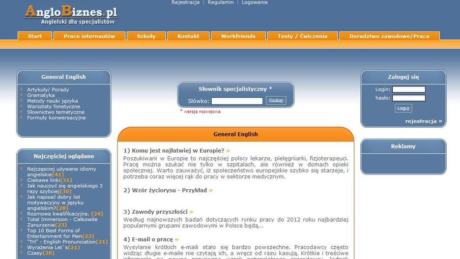 Portal działa od kilku dni i jak informują twórcy jest pierwszym w Polsce serwisem stworzonym głównie do nauki języka angielskiego specjalistycznego. Wynika to zapewne z zapotrzebowania na rynku pracy, stąd znajdziemy na stronie nie tylko Business English, ale także angielski dla opiekunek, gospodyń domowych, sprzedawców, czy lekarzy.