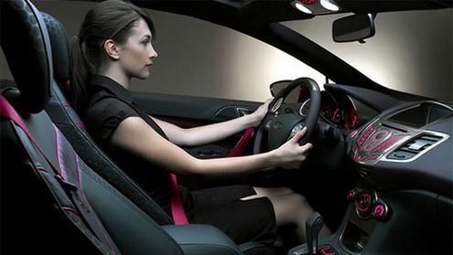 Na pewno od razu zauważyliście tą piękną panią, siedzącą za kółkiem nowej Fiesty. Mimo, że widać ją tylko z boku i to w pozycji siedzącej, to i tak można stwierdzić, że ma kilka zalet. Niestety, nie jest prawdziwa!