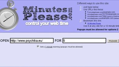Stronka umożliwia ustawienie ograniczenia czasowego na dowolną stronkę którą chcemy obejrzeć, a na której nie chcemy zawiesić się na bliżej nieokreśloną wieczność. Wystarczy, że wpiszemy adres strony którą chcemy obejrzeć oraz czas po którym chcemy skończyć sesję. minutesplease.com otworzy nam w kolejnej zakładce wskazaną przez nas stronę, a po upływie wskazanego czasu zamknie ją.