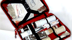 Wyposażenie powinno być w miarę kompletne tak, żeby móc na miejscu, bez szukania pomocy medycznej, udzielić podstawowej pomocy. Oczywiście w poważniejszych wypadkach kontaktujemy się jak najszybciej z pogotowiem.