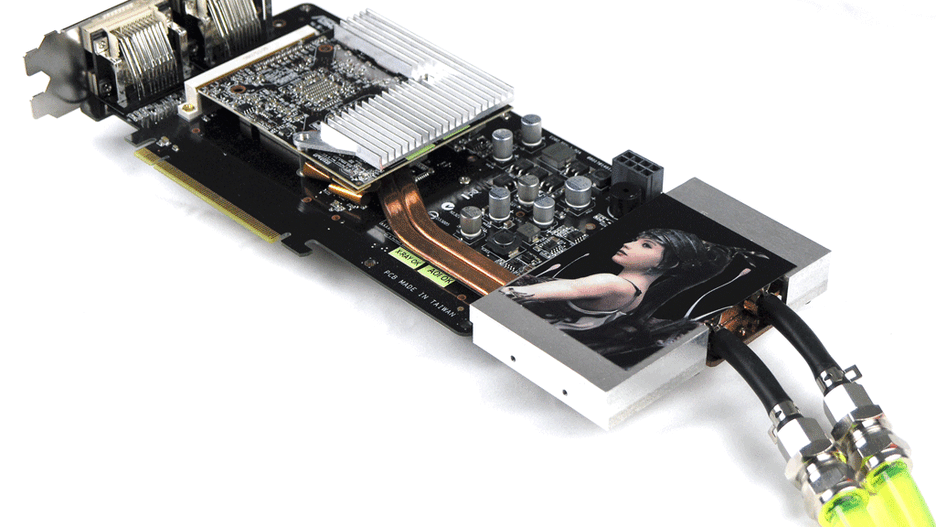 Może i nie jest to innowacja, gdyż na rynku osiagalne są już modele 4850 oraz 4870 firmy ATI, niemniej jednak nie jest to sprzęt, dla którego płyta PCB została zaprojektowana. Patrząc na budowę, dwa procesory osadzone u góry i jeden na spodzie karty, dostarczone są wraz z chłodzeniem wodnym Thermaltake BigWater 760. Na zdjęciach widoczne są kable do CrosFire.