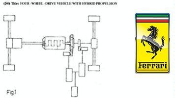 Jak donosi* Autocar *włoski producent sportowych samochodów pracuje nad swoim własnym napędem hybrydowym. Według doniesień Ferrari zgłosiło się do urzędu patentowego z wnioskiem odnośnie tego typu napędu. W swojej wizji Włosi przewidzieli 6 różnych możliwości rozmieszczenia poszczególnych elementów układu hybrydowego. Każdy z nich wygląda jednak podobnie: elektryczna jednostka napędzająca jedną oś i tradycyjny silnik zasilający drugą.