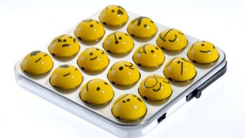To na razie jeszcze tylko koncepcja wymyślona przez włoskich projektantów z Adriano Design, ale podobno planowane jest rozpoczęcie produkcji tego gadżetu w przyszłym roku. Bajca, podłączana do komputera przez USB posiada 16 klawiszy oznakowanych wesołymi (lub smutnymi) buźkami. Ale to nie wszystko. Kulki-klawisze można wyciągać i wymieniać na inne zestawy emotek. Albo przerabiać na bizuterię dla geeków, gdyż każdy z klawiszy ma dziurkę umożliwiającą nawleczenie emotikonki na sznurek lub umieszczenie np. w kolii czy sygnecie.