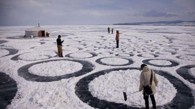 Kręgi w zbożu, które niby zostawiają po sobie kosmici, to przeżytek. Teraz przyszedł czas na zmianę. Zamiast złocistych połaci pól można wykorzystać do tej sztuki chociażby zamarznięte jezioro Bajkał. Jest to jezioro tektoniczne w Azji, które nazywa się również błękitnym okiem Syberii.