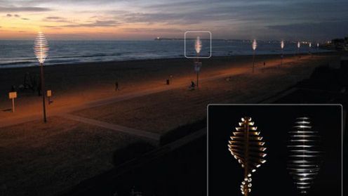 To drugie będzie możliwe dzięki specjalnej konstrukcji latarni: jej szczyt działać ma jak wertykalny wiatrak. Obracający się element generować będzie energię elektryczną, która zostanie wykorzystana do zasilenia świetlówek typu LED. Same zaś żarówki umieszczone zostaną na końcach bambusowych patyczków. I - zależnie od pogody - spacerujący plażą albo będą mogli podziwiać pojedyncze punkty świetlne na końcach bambusowych pałeczek, albo też oglądać świetlne wrzeciona, które powstaną, kiedy wiatrak będzie się obracał na skutek nadmorskich/przyjeziornych podmuchów.