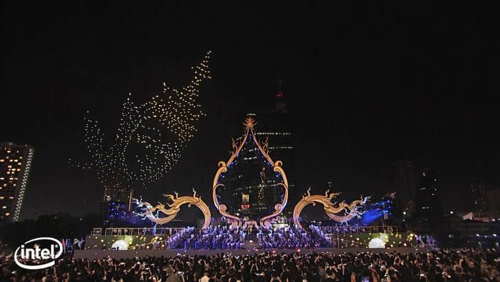 Np. ubiegły sylwester to 300 podświetlonych dronów nad głowami łodzian, którzy witali Nowy Rok w Manufakturze.