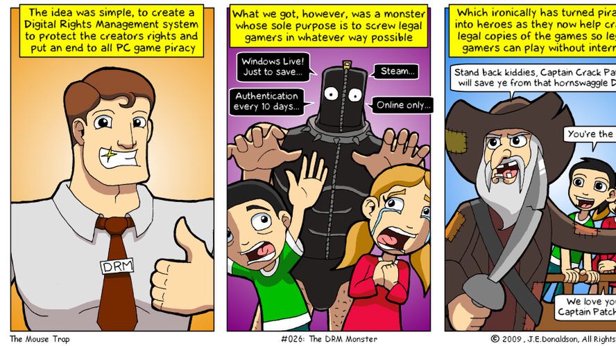 Na blogu The Mouse Trap trafiłem na komiks satyryczny idealnie opisujący kwestię zabezpieczeń DRM (Digital Rights Management). Obrazek nie wymaga komentarza... przynajmniej mojego.
