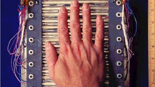 To, w jaki sposób mózg "odbiera" ciało, ma kluczowe znaczenie w łagodzeniu ostrego bólu. Musi jednak dotykać wyłącznie osoba, którą boli - kładzenie rąk przez innych nie przynosi skutków. Aby to stwierdzić, posłużono się metodą Thermal Grill Illusion (TGI). Jak to działa? Zanurza się palec wskazujący i serdeczny w gorącej (ale nie wrzącej) wodzie, a środkowy w zimnej. Wówczas mózg nagle alarmuje nas, że środkowy palec... trafił do wrzątku! Mało tego - odczuwamy wtedy ból. Dlaczego tak się dzieje?