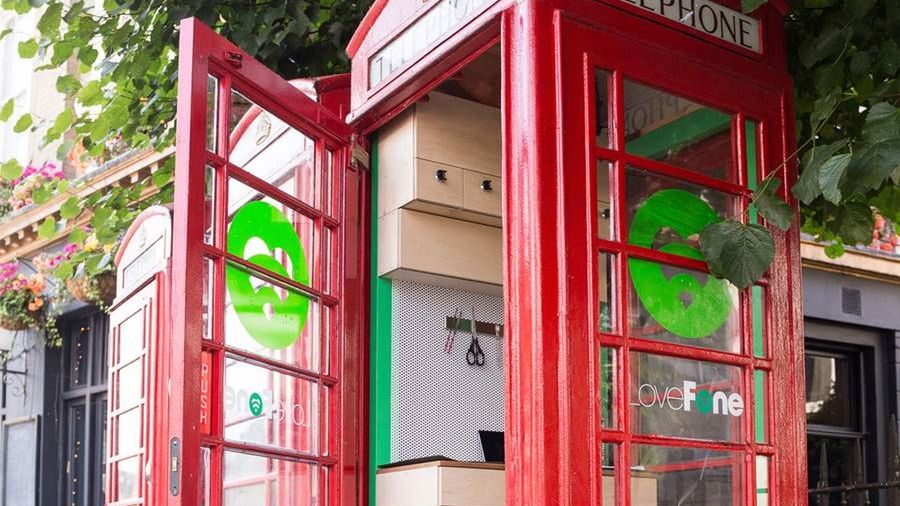 Brytyjska firma Lovefone zdecydowała o stworzeniu w legendarnych budkach miniaturowych punktów naprawy telefonów komórkowych. Jak na zabytek przystało, obyło się bez dużej ingerencji w obiekt: w środku umieszczono biurko i szafki, a w nich niezbędne narzędzia. Perforowana ściana utrzymuje magnetyczny uchwyt na narzędzia, a pozostałe trzy pozostawiono odsłonięte i zapewniające mnóstwo światła.