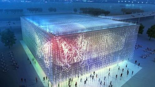 Budynek, który widzicie na zdjęciu to nie żaden futurystyczny projekt, ale obiekt, który będzie można podziwiać już w przyszłym roku w Szanghaju na World Expo 2010. Najdziwniejsze, że ściany budynku zaplanowano w technologii szkieletu poliwęglanowego. Poliwęglan pochodzi zaś z przetworzenia etui na CD. Dodam, że konstrukcja może mienić się wszystkimi barwami tęczy.