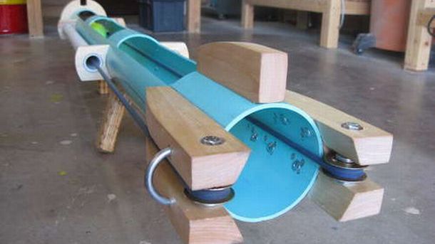 Chyba najbardziej imponującą bronią własnej roboty jest seria zabójczych proc konstruowanych przez Joerga Sprave. Bungee Bazooka przypomina zabawkowe strzelby i pistolety z bezpiecznymi pociskami, ale i tak robi spore wrażenie.
