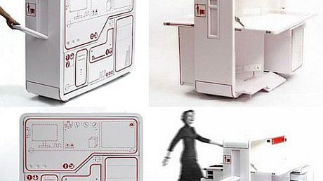 W Heyah pakujemy najlepiej? To hasło już nieaktualne. Firmie projektowej Planet 3 Studios z Bombaju udało się zapakować cały ten stuff do pudła o całkiem kompaktowych wymiarach. Dodatkowo wyposażone w małe kółeczka przenośne biuro może być szybko i bez większego wysiłku przewożone z miejsca na miejsce. Projekt wciąż jeszcze na etapie prototypu, ale ustalona już cena (ok. 2350 dolarów) pozwala spodziewać się gotowego produktu w niedalekiej przyszłości.