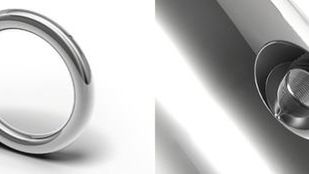 Jak wygląda wszechświat? Jego maleńki model, inspirowany teoriami Stephena Hawkinga znajduje się w drobniutkiej wyrwie na powierzchni tej srebrnej obrączki.