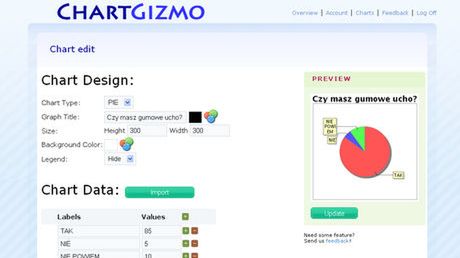 ChartGizmo.com to prosta w zamyśle i w użyciu strona do generowania wykresów, które można potem umieszczać na stronach internetowych lub na blogach. Po prostej rejestracji, gdzie podaje się tylko swój adres e-mail i hasło możemy od razu rozpocząć pracę nad wykresem. Za darmo, oczywiście.