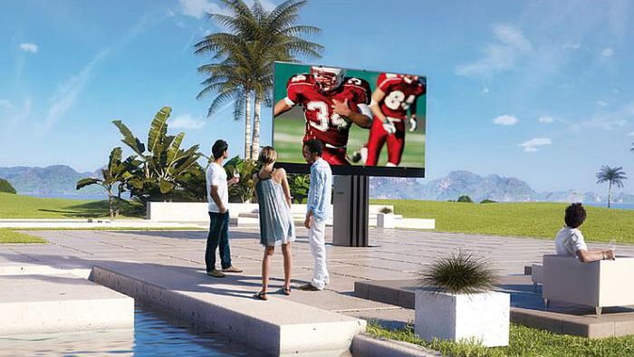 Aby rozwiać wszelkie wątpliwości, na wstępie podam cenę – ponad 800 000 dol. Co otrzyma w zamian skromny klient? Jeden z największych dostępnych na rynku wyświetlaczy LCD. Przekątna to 201 cali – ponad 5 m! Całość przeznaczona jest raczej do montażu na zewnątrz.
