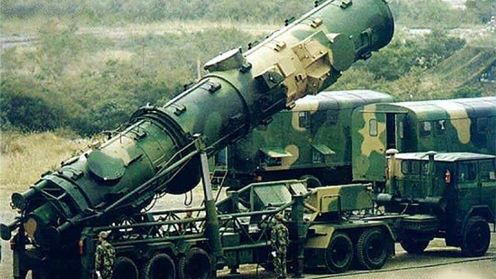 Na zdjęciu wyrzutnia rakiet Dong Feng 21 (starszego typu) w pozycji bojowej.