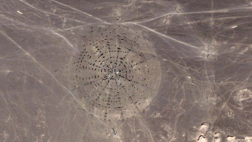 Po przybliżeniu zdjęć w Google Maps widać, że w niektórych miejscach porozrzucane są spalone wraki samochodów ciężarowych, co może być dowodem na to, że konstrukcja wykorzystywana jest jako poligon dla rakiet.