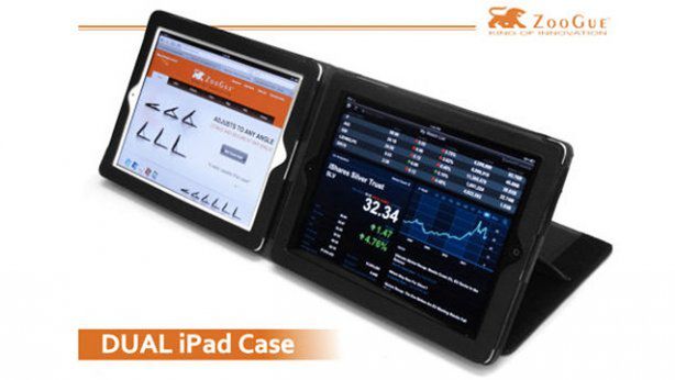 Wczoraj pokazywałem wam japoński pomysł na grafikę 3D na iPadzie. Teraz firma ZooGue postanowiła pokazać swoją propozycję na ulepszenie iPada, tworząc niedorzeczną wręcz obudowę na tablet. Dzięki niej można zamocować dwa iPady obok siebie i korzystać z nich niczym z dwóch monitorów.