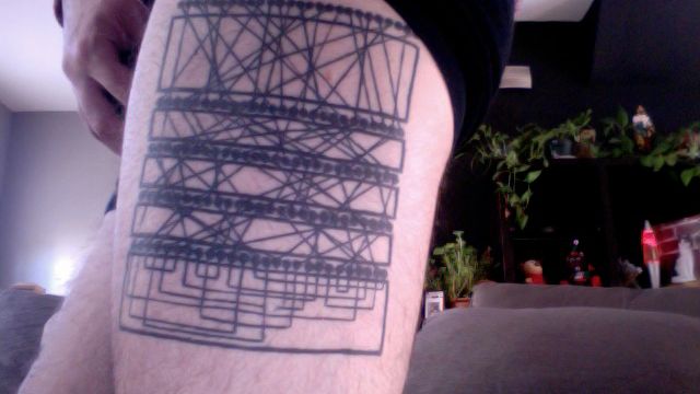 Zdjęcie przedstawiające ten tajemniczy tatuaż pojawiło się w serwisie geekytattoos.com, a ma go użytkownik o imieniu Ross. Najwidoczniej zapragnął, żeby rysunek na jego ciele był nie tylko oryginalny, ale i zagadkowy. Można powiedzieć, że mu się udało: tatuaż przedstawia schemat Enigmy.
