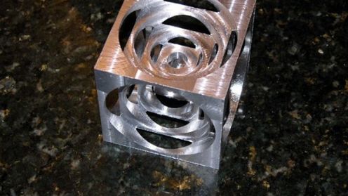 Wydrążony metalowy sześcian to tzw. kostka Turnera. Kiedyś wykonanie takiego przedmiotu było rodzajem testu dla operatorów maszyn do obróbki metalu. Po obejrzeniu gotowej kostki rzemieślnik musiał sam wpaść na pomysł, jak wykonać własny egzemplarz, przeprowadzić niezbędne obliczenia oraz wykazać się sprawnością w operowaniu maszyną.