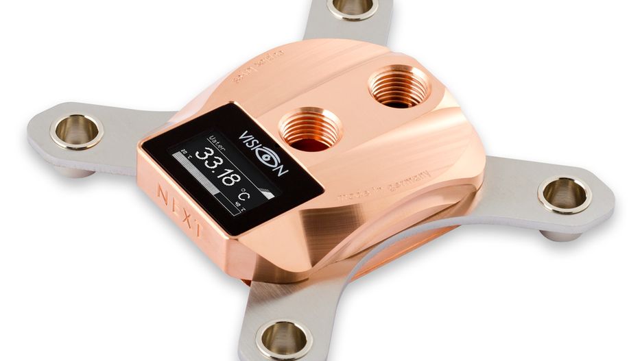 Vision to z kolei wbudowany w chłodzenie ekran OLED o rozdzielczości 128 × 64 pikseli, wyświetlający szereg przydatnych informacji, a wśród nich temperaturę cieczy, procesora czy choćby obciążenie poszczególnych rdzeni. Pracę ekranu konfigurujemy przez interfejs USB i pod kontrolą dedykowanego oprogramowania Aquasuite.