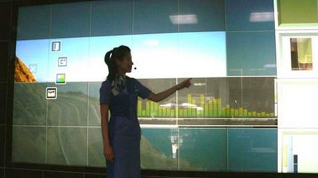 Jak wdać ściana składa się z serii ekranów połączonych w interaktywną siatkę. Komunikacja dotykowa to oczywisty dodatek. Mi najbardziej podobało się jednak wykorzystanie urządzenia do symulacji szkolnej tablicy. Nie wyobrażam sobie by przy czymś takim odbierać maile (biegając od jednego końca pokoju do drugiego?), ale jako narzędzie edukacyjne czy naukowe mogłoby sprawdzać się znakomicie.
