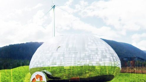 - Baterie słoneczne i wiatrak - oba źródła zasilania w ekologiczną energię umieszczono na dachu konstrukcji.