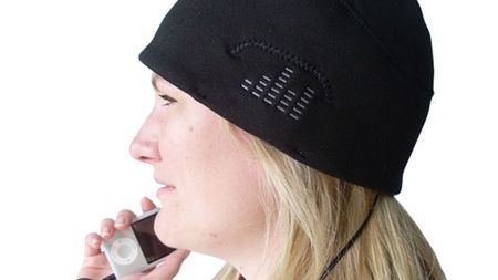 Prezentowany na zdjęciach gadżet jest połączeniem słuchawek oraz czapki. Po każdej jej stronie, na wysokości uszu znajdują się głośniki, gotowe do odgrywania naszych ulubionych melodii. Wystający z tyłu kabelek zakończony jest standardowym mini jackiem. Naturalnie, pod czapkę możemy podpiąć niemal dowolny odtwarzacz mp3.