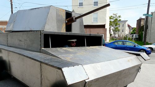 Czołg jest nawet mocno okrojony, ponieważ napędza go wyłącznie siła ludzkich mięśni. Zmieści się w nim jednak sześcioosobowa załoga, która bez trudu "rozbuja" ten ociężały wehikuł. Na szczególną uwagę zasługuje jednak maskowanie czołgu, a konkretnie moro, do którego namalowania wykorzystano białą, różową i czerwoną farbę. Czyżby tajemnicze wojska najeźdźców atakowały terytoria Hello Kitty i lalek Barbie? Z resztą w dzisiejszych czasach wszystko jest możliwe. Obejrzyjcie jak powstawał ten dość nietypowy pojazd.