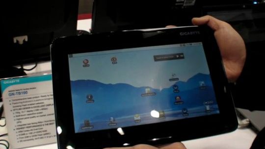 Tym razem znany producent płyt głównych i kart graficznych chce uszczknąć coś dla siebie z coraz bardziej rozrastającego się rynku tabletów. Urządzenie z 10-calowym ekranem i systemem Android pojawiło się na targach w Hanowerze. Czy produkt Gigabyte ma szanse na udany debiut - oceńcie sami.