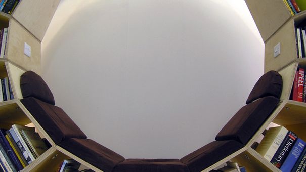 Patrząc na bookcase-cum-chair, przychodzą na myśl obrazy świetlistych kręgów znanych z filmów science fiction. Ten niewątpliwie oryginalny półkofotel może stanowić wygodny i stylowy element wyposażenia każdego nowoczesnego mieszkania. Oczywiście jeśli toś przepada za owalnymi kształtami.