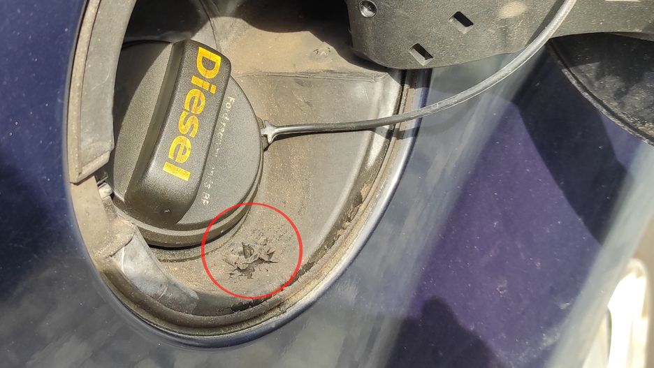 Podczas deszczu całą operację musiał przeprowadzić na niezadaszonym podjeździe. Klapka wlewu paliwa przez chwilę była otwarta, zanim pan Mariusz przyniósł kanister. W trakcie dolewania paliwa zauważył mały okrągły otwór pod wlewem, do którego spływała woda. Natychmiast go wytarł, zamknął klapkę i napisał do redakcji autokult.pl.