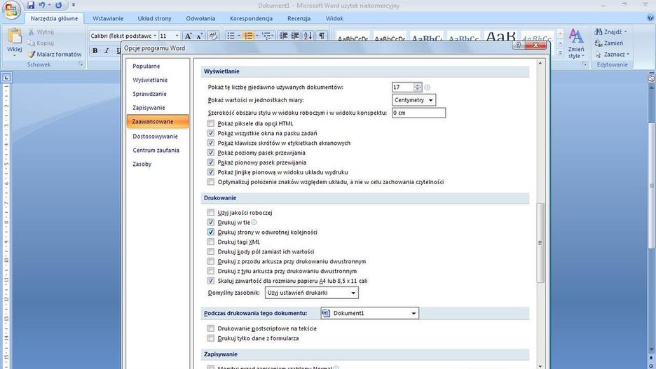 Jest to w zasadzie banalnie proste, ale podejrzewam, że części z was podobnie, jak mnie wcześniej nie chciało się za bardzo bawić w opcjach Worda. Oto więc co należy zrobić: