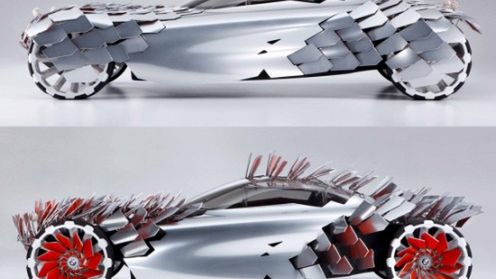 Samochód pokryty byłby niewielkimi, ruchomymi płytkami powleczonymi warstwą fotowoltaiczną. W zależności od wybranej opcji płytki albo mogłyby leżeć płasko na karoserii i zachodzić na siebie jak łuski ryby, całą powierzchnią wychwytując energię słońca; albo sterczeć bardziej lub mniej pionowo (skojarzenie ostatnie i przedostatnie - patrz wyżej) - by zoptymalizować ustawienie powierzchni fotoczułej względem słońca lub działać jak hamulce aerodynamiczne. Co więcej - warstwa 260 płytek byłaby całkowicie wymienialna. Płytki znajdowałyby się również na kołach - w wersji złożonej pracowałyby jako skrzydła turbin wiatrowych.