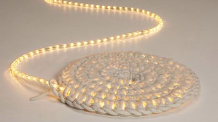 Light Carpet autorstwa Johanny Hyrkas to dość niecodzienny projekt, który zakłada polaczenie wełny z oświetleniem LED. Design (bo jest to tylko koncept) zakłada bowiem ubranie plastikowego węża z lampkami LED w cieplutki wełniany sweterek – duże oczka są tutaj niezbędne. Całość należy układać spiralnie, otrzymując w efekcie mięciutki dywanik, który świeci.